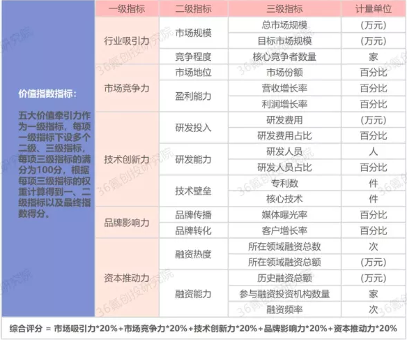 36 氪創(chuàng)投研究院動(dòng)態(tài)跟蹤觀察了新經(jīng)濟(jì)市場(chǎng)獨(dú)角獸企業(yè)們,根據(jù)學(xué)術(shù)界和一級(jí)市場(chǎng)參與者們對(duì)獨(dú)角獸企業(yè)的成長(zhǎng)機(jī)制及估值研究,結(jié)合問(wèn)卷調(diào)研、桌面研究、數(shù)據(jù)整理等方式,回溯了每一家獨(dú)角獸企業(yè)自其成立以來(lái)的表現(xiàn),并建立【價(jià)值指數(shù)模型】為獨(dú)角獸們?cè)u(píng)分。